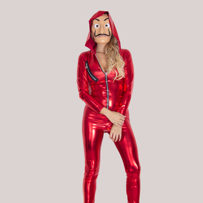 Disfraz de la casa de papel. Incluye enterizo hasta el tobillo, con capota, máscara.