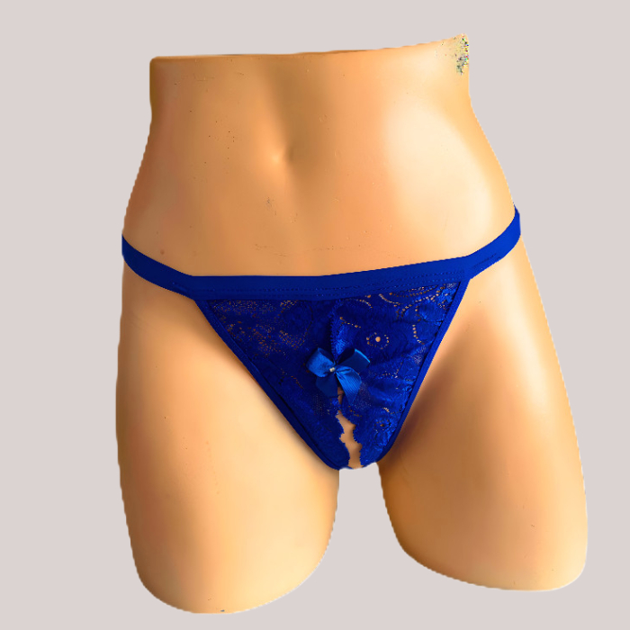 Panty en encaje con abertura en la entrepierna y detalle de corazón metálico en la parte trasera. Industria 100% Colombiana.